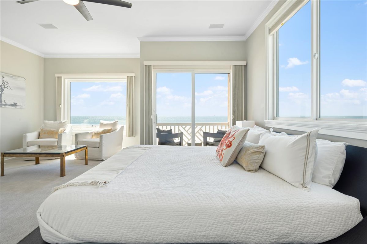 The spacious open-concept living area flows effortlessly, with large windows bringing in natural light and allowing you to enjoy the stunning ocean views from virtually every room. The gourmet kitchen features top-of-the-line stainless and gas appliances, sleek countertops, and ample space for preparing meals. The living area is tastefully furnished with plush seating and stylish décor, creating an ideal place for gathering and unwinding after a day of island exploration. Each of the four bedrooms is a peaceful retreat, furnished with luxurious beds, including a $17,000.00 imported Italian master bed to ensure incredible nights of sleep. Whether you're soaking in the tub or enjoying a quick shower after a day in the sand, you’ll feel pampered and rejuvenated.